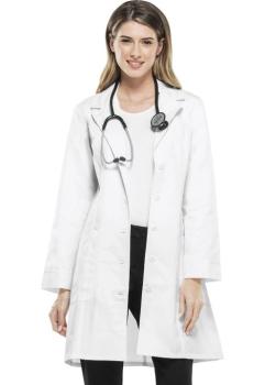 A Modern Classic fit lab coat features a notched lapel, front yokes, front and back princess seams, two roomy double patch pockets with stitched down instrument holders, center back vent and adjustable back button tabs. Center back length: 36". MORE»