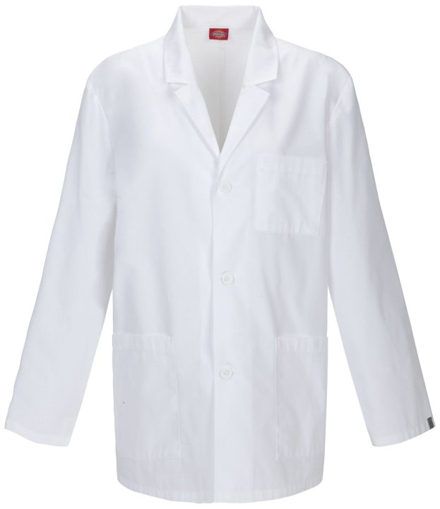 Mens Fit Consultation lab coat features anotched collar and a three button closure.Also featured are a chest pocket, oneinside chest pocket, two patch pocketsand a back kick pleat. Center back length: 31".