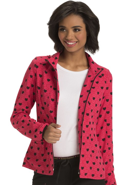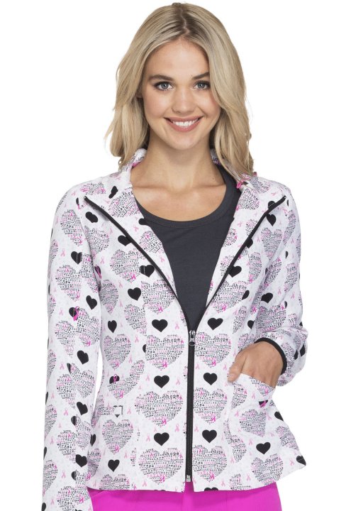 A Contemporary fit, zip front warm-up jacket features a detachable hood, patch pockets and an outer welt pocket with signature pink bartacks. Also featured are an exterior pink bungee loop, hidden pink grommet and bungee loop for headphone cable managemen