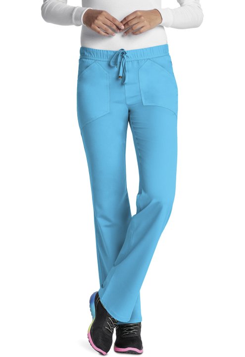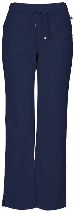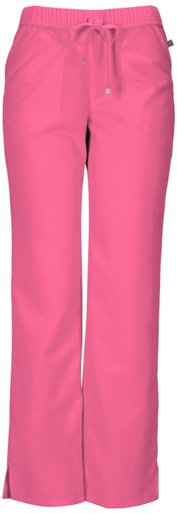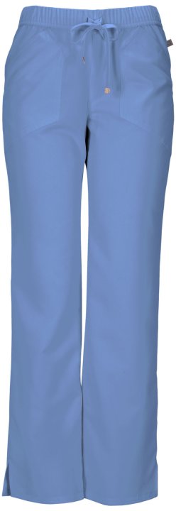 A Contemporary fit, low rise, straight leg pant features an all-around elastic at waist and adjustable drawstring with signature HeartSoul plated gold tips. Also featured are angled front patch pockets, a back pocket, double needle topstitching throughout
