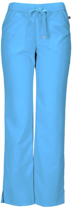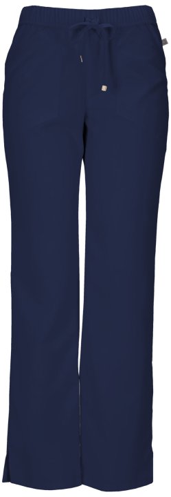 A Contemporary fit, low rise, straight leg pant features an all-around elastic at waist and adjustable drawstring with signature HeartSoul plated gold tips. Also featured are angled front patch pockets, a back pocket, double needle topstitching throughout