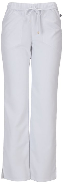 A Contemporary fit, low rise, straight leg pant features an all-around elastic at waist and adjustable drawstring with signature HeartSoul plated gold tips. Also featured are angled front patch pockets, a back pocket, double needle topstitching throughout