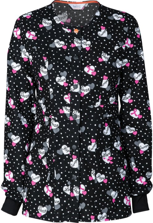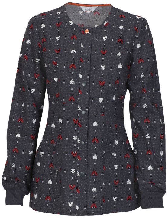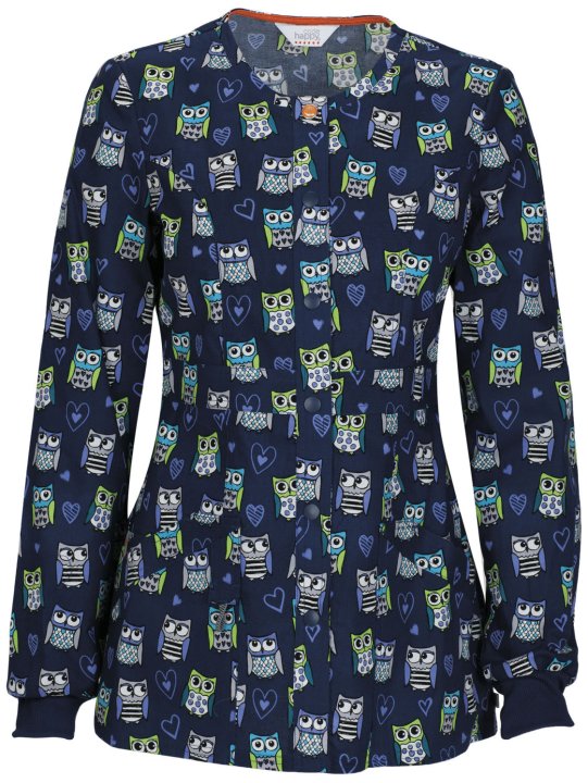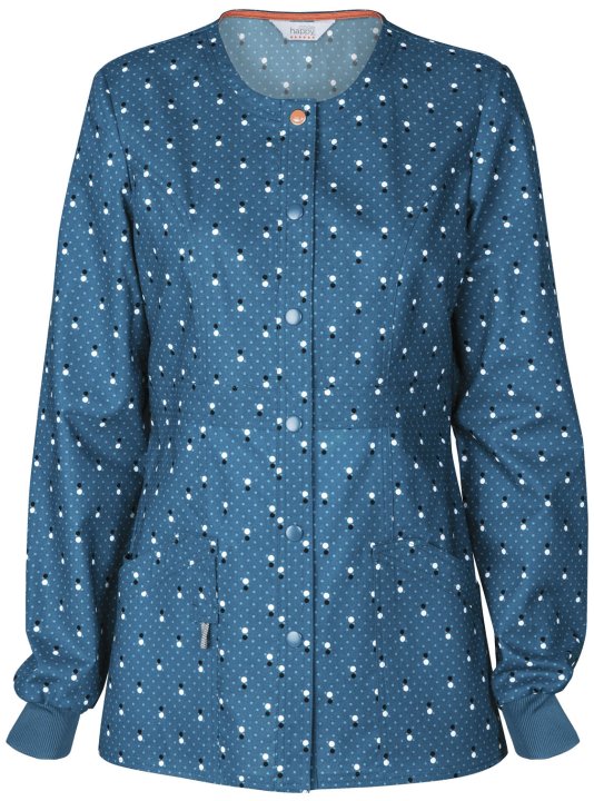 A Contemporary fit warm-up jacket features a snap front closure with one logo snap, front and back princess seams, multiple patch pockets, a bungee I.D. loop, rib knit cuffs, signature mesh binding at the back neck, and double needle topstitching. Center