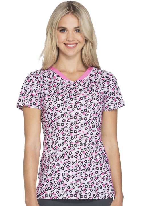 HeartSoul Women's V-Neck Print Scrub Top