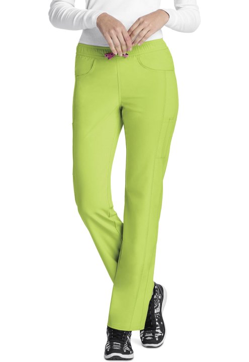 A Contemporary fit, low rise, straight leg pant features an all-around elastic, an adjustable signature woven tape drawstring and zigzag and double-needle topstitching details. Also featured are front pockets, side cargo pockets, one functional back pocke