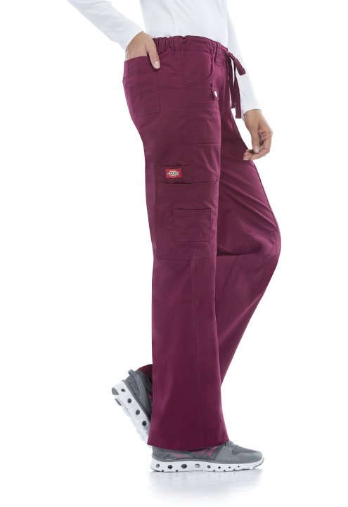 A Contemporary fit, low rise, straight leg pant features 9 utility pockets, an elastic waist with an inside drawstring and wide belt loops.The front patch pockets have extra exterior pockets. The left front patch pocket has an elastic bungee loop, while t