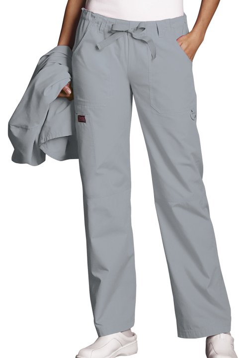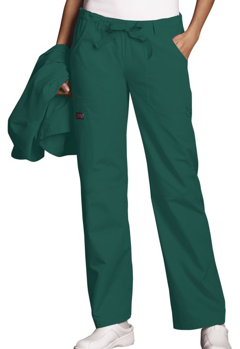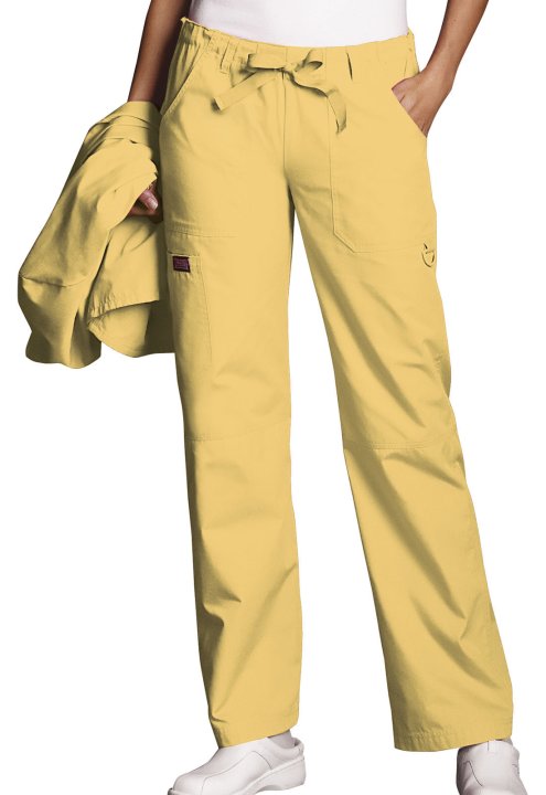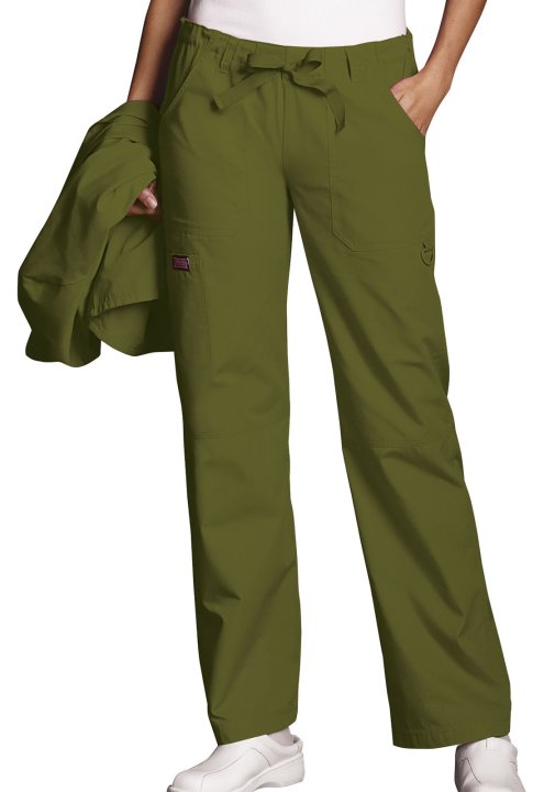 A Modern Classic fit, low rise, straight leg, drawstring pant with an elastic waist features, two front pockets, a D-ring on the left pocket, one cargo pocket with one scissor pocket, leg seaming detail at the knee, five belt loops and double needle top