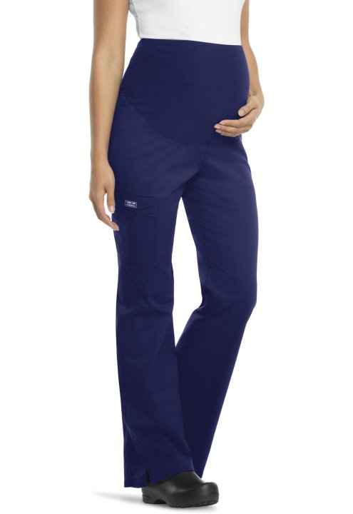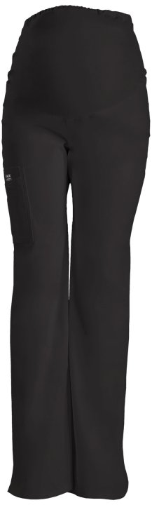 This great fitting, moderate flare leg maternity pant features a soft and stretchy panel that grows with you. The knit panel stretches over your belly for maximum coverage and support. Also featured are a sectional cargo pocket, two back patch pockets, a