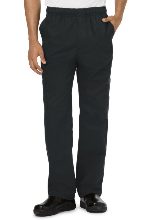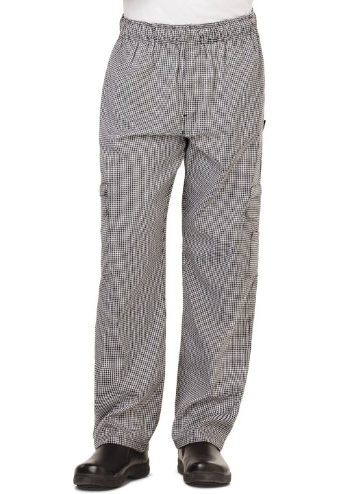 The double zipper cargo pockets on the legs keep your items secure. This pant features an elastic and drawstring waist and five pockets. It has a finished waistband, multi needle stitching and bar tacks for durability. Available in black and woven houndst