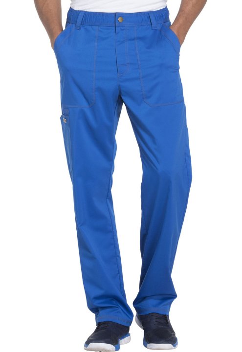 A Men's straight leg pant features a functional drawstring, zip fly with button closure, belt loops, deep front patch pockets, a right cargo pocket with extra scissor pockets and back patch pockets. Also featured are twill-tape utility loops, a hidden sid