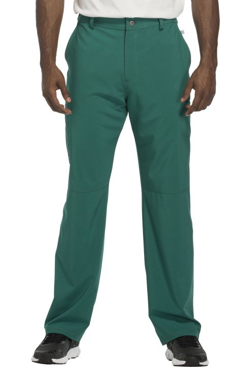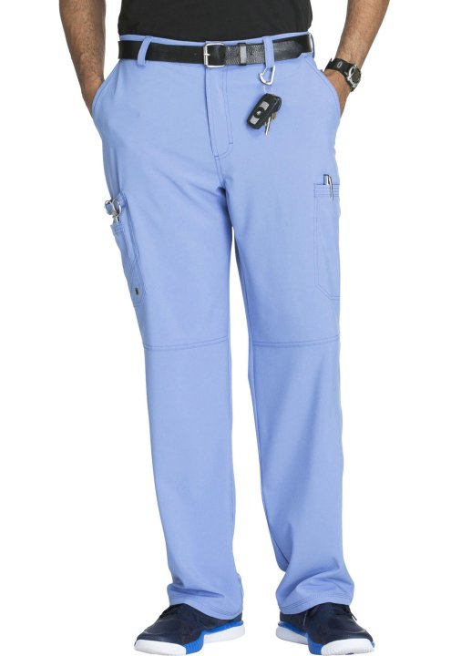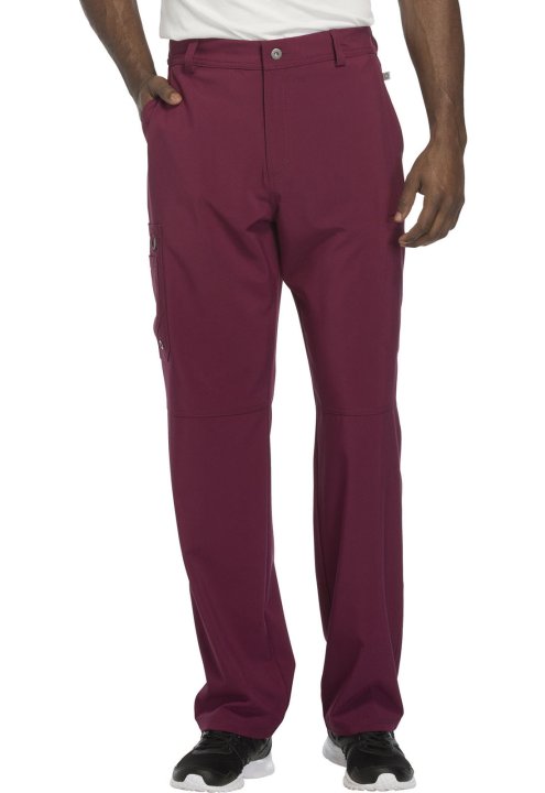 A Mens Athletic fit tapered leg pant features an inside functional drawstring, back elastic waistband, five belt loops, a zip fly with button closure and a hidden inseam gusset for extra ease. Also featured are two front slash pockets, a right double carg