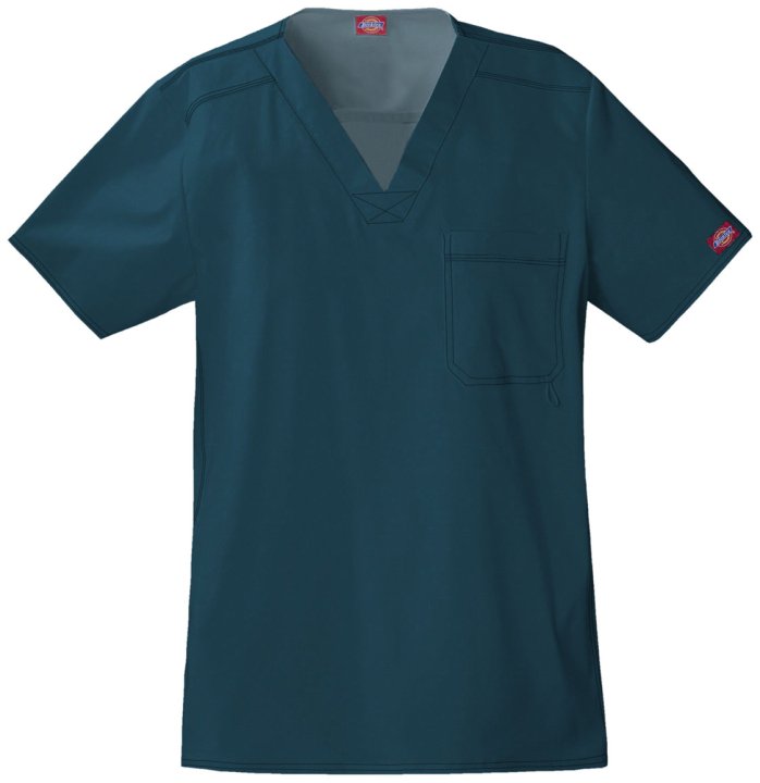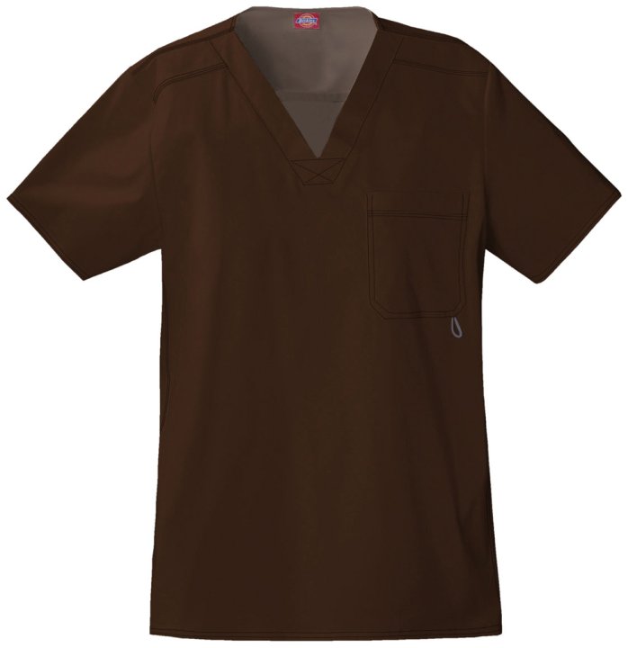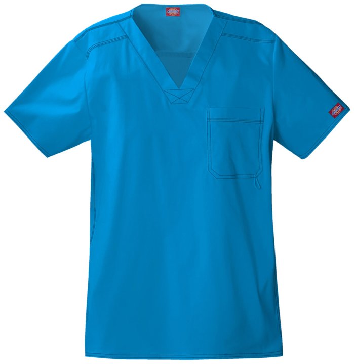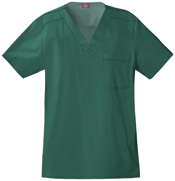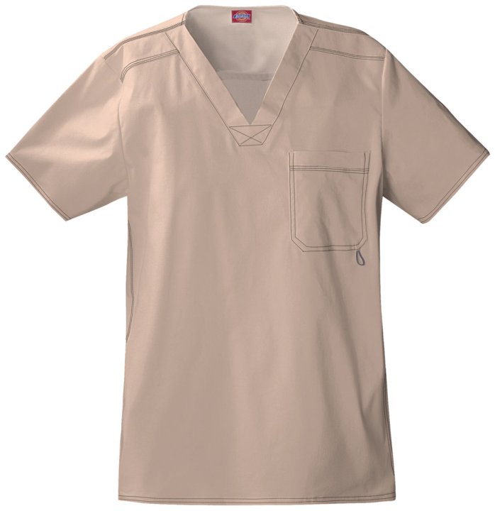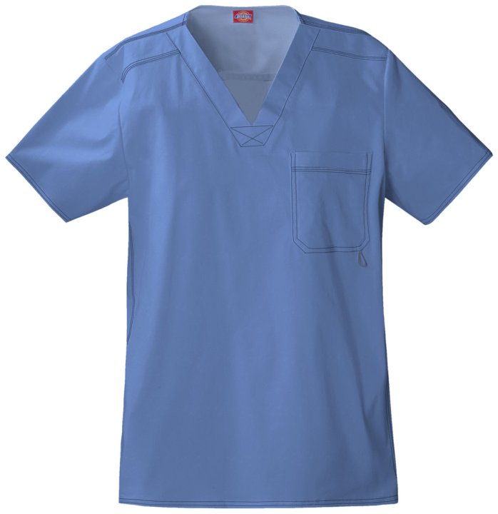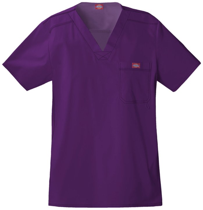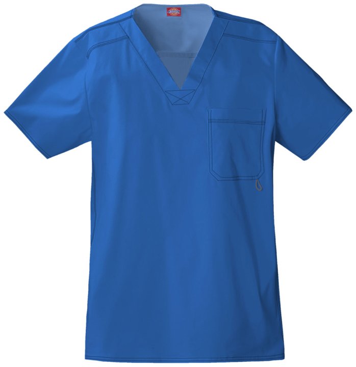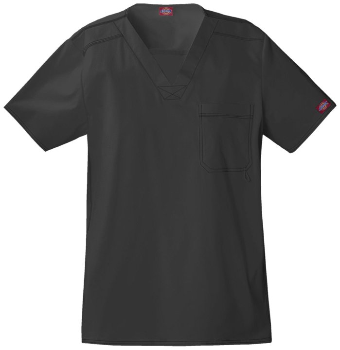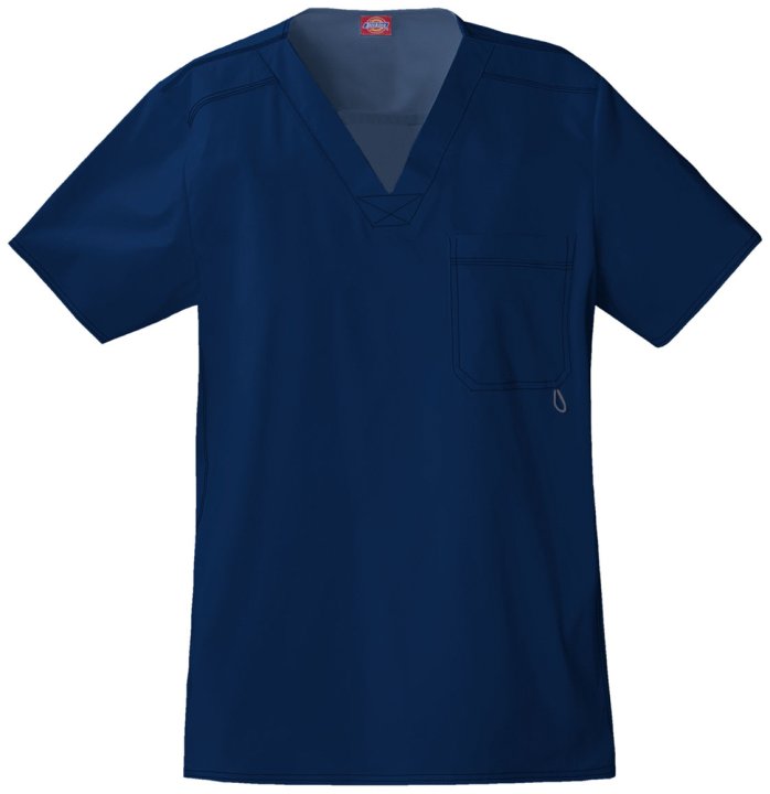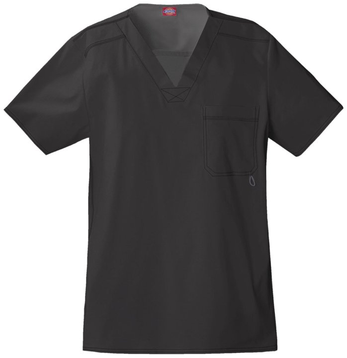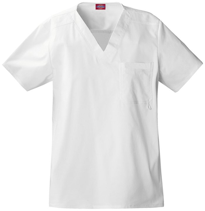 Mens Fit top features a chest pocket with an elastic bungee loop and one pocket on the left sleeve with additional self loops for holding pens. Set-in sleeves, back yoke, multi-needlecontrast topstitching (White takes tonal topstitching) and side panels w