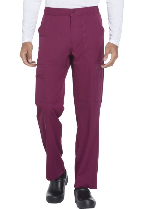 A Men's straight leg pant features a functional drawstring, zip fly with front button closure and a hidden inseam gusset for an easy fit. Also featured are front slash pockets, patch back pockets, cargo pockets (the right with zip closure and instrument l