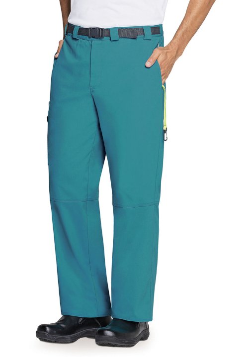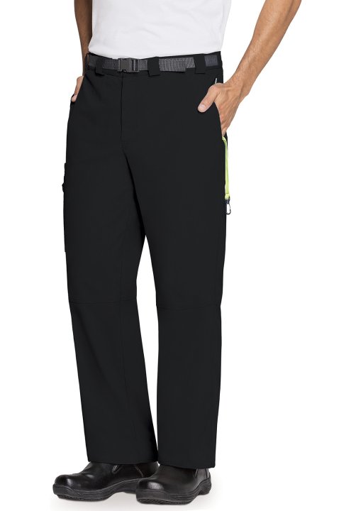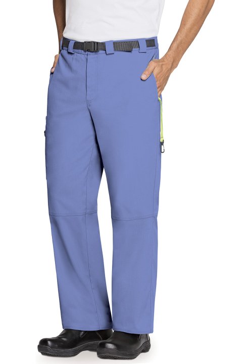 This Men's, natural rise, straight leg cargo pant will have you looking sharp with little effort. The waist is styled with tunnel belt loops and front adjustable clip buckle belt. Back elastic waist allows for added comfort. Two front pockets, double carg