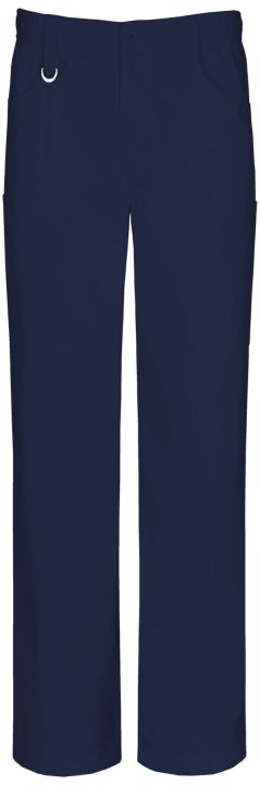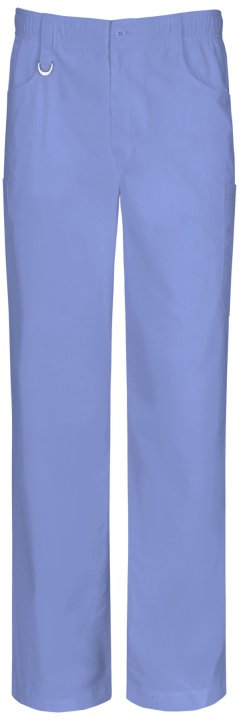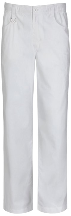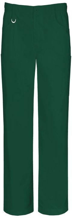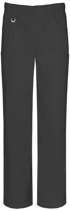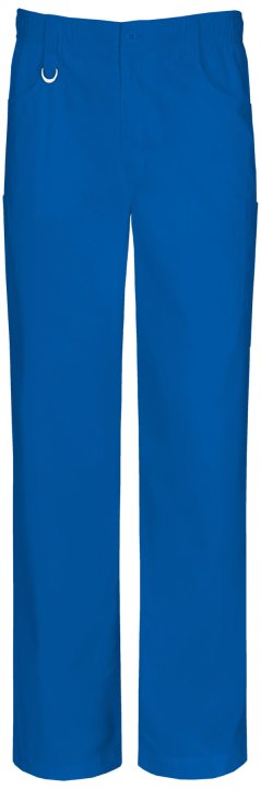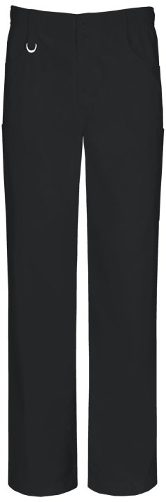 Mens zip fly pant features an all-around elastic waistband with a button closure, an adjustable interior drawstring and a Dickies logo D-ring on the front belt loop. Fit and leg descriptions are printed on the interior back waistband. Also featured are tw