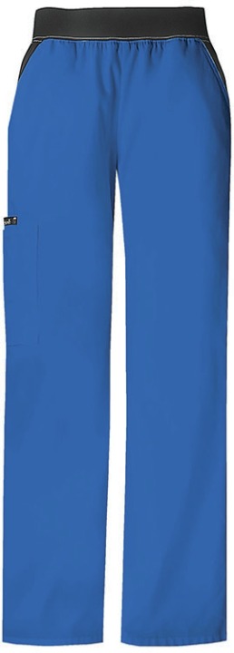 A Modern Classic fit, mid rise, moderate flare leg pant features a "Comfort Fit" knit spandex waistband reinforced with inside elastic for extra support and elasticity. Also featured are contrast slash pockets, a cargo pocket with a stitched down pen slot