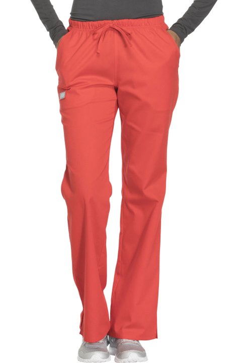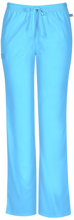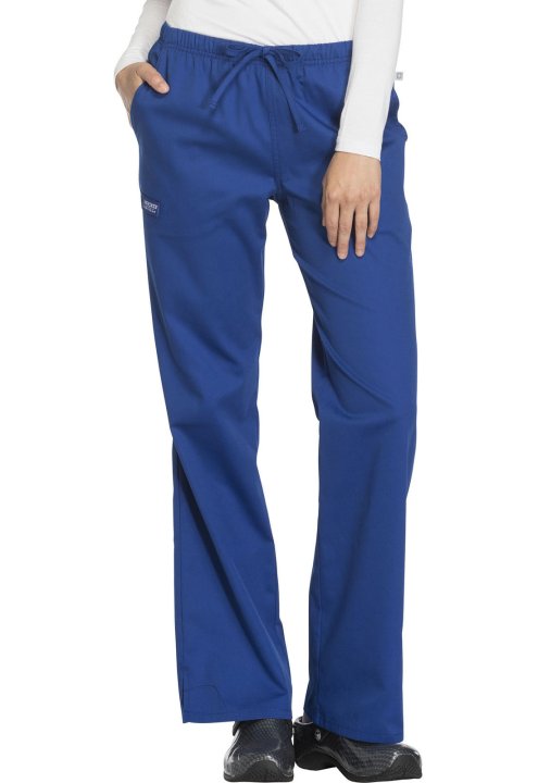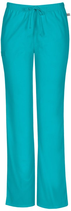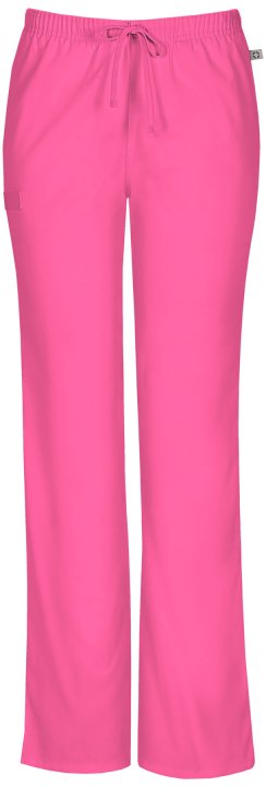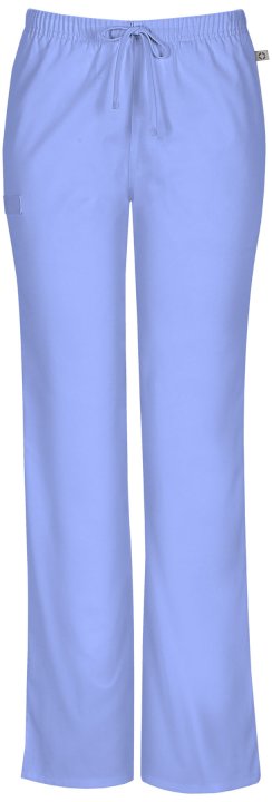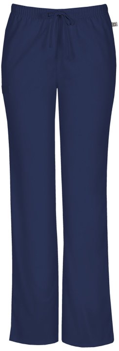 A Modern Classic fit, mid rise, moderate flare leg pant features an adjustable drawstring with an all around elastic waistband. Also featured are front slash pockets, an instrument loop, a back pocket and side vents. Inseam: 28 1/2"