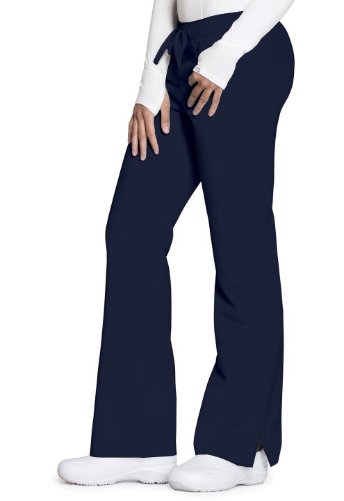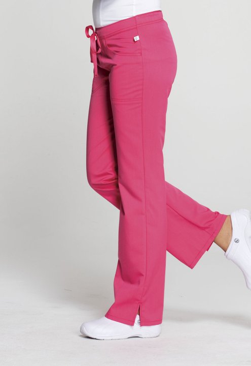 This Contemporary fit, mid rise, moderate flare leg pant offers a cool, sleek fit that is a perfect addition to your wardrobe. Adjustable front drawstring and back elastic gives added comfort. Two front pockets, cell phone pocket, back pocket and instrume