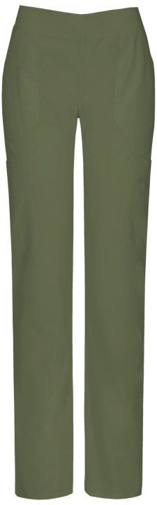 A Contemporary fit mid rise, moderate flare leg pull-on pant features a back elastic waistband. Fit and leg descriptions are printed on the interior back waistband. Also featured are two front pockets, multiple cargo pockets with pencil slots and side ven