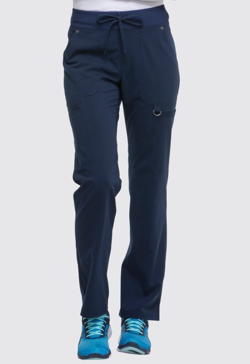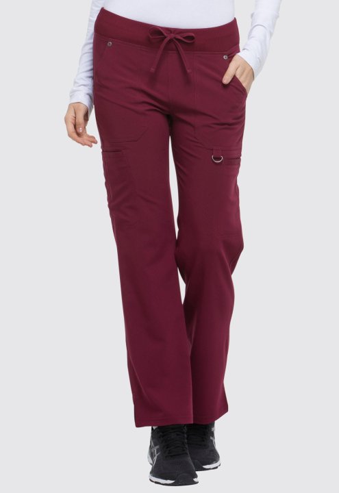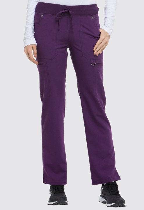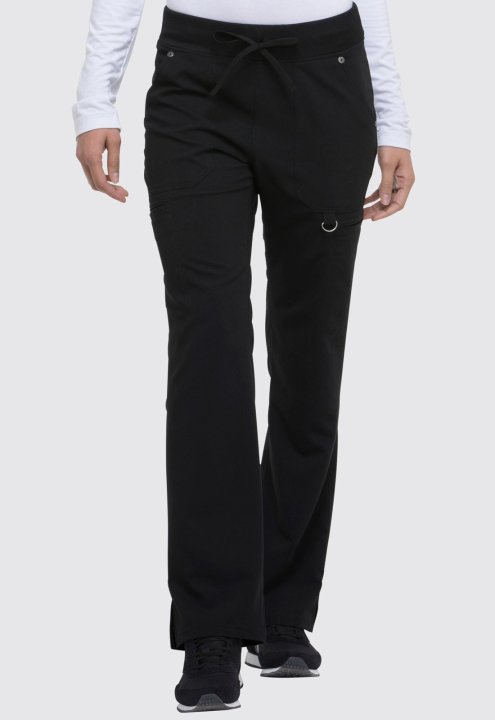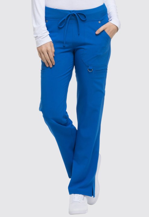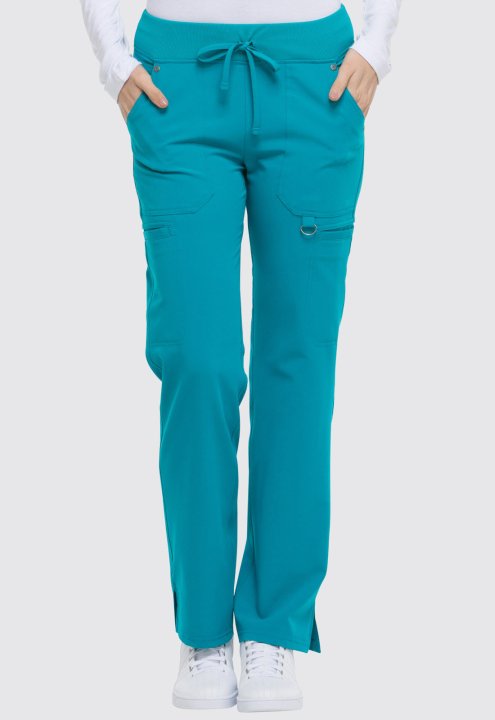 A Contemporary fit, mid rise, straight leg pant features an elastic rib knit waistband with a functional drawstring. It features six pockets; two front pockets, two cargo pockets, two back pockets, a signature tonal woven label, a utility D-ring, and sid