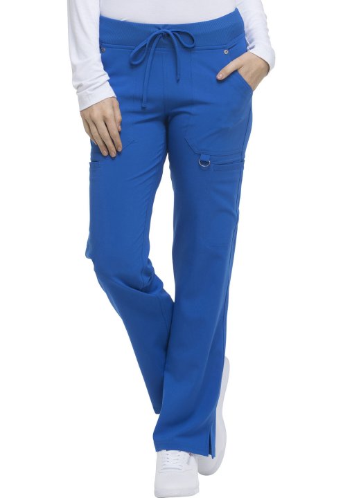 A Contemporary fit, mid rise, straight leg pant features an elastic rib knit waistband with a functional drawstring. It features six pockets; two front pockets, two cargo pockets, two back pockets, a signature tonal woven label, a utility D-ring, and sid