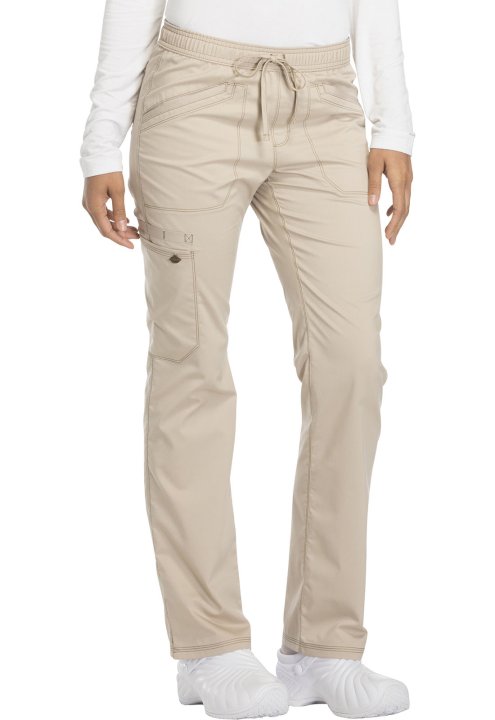 A Contemporary fit, mid rise, straight leg pant features a functional drawstring with elastic waistband and a Dickies logo camo print inside facing. Also featured are side angled pockets, a cargo pocket with utility loop, a back pocket, double and triple
