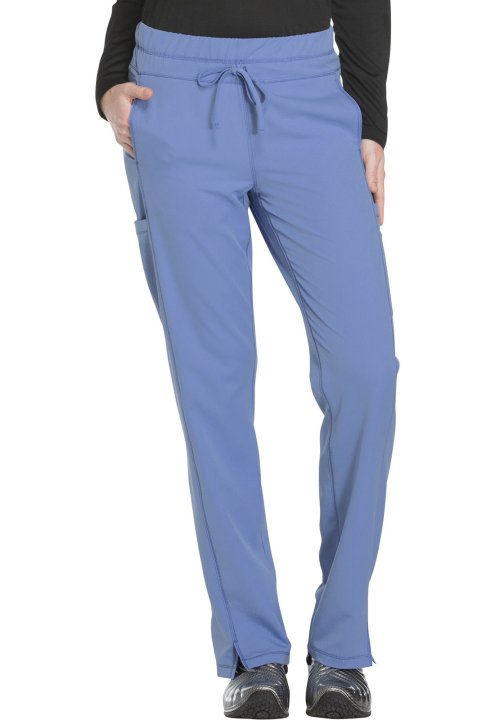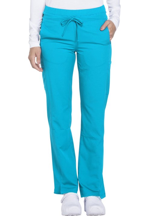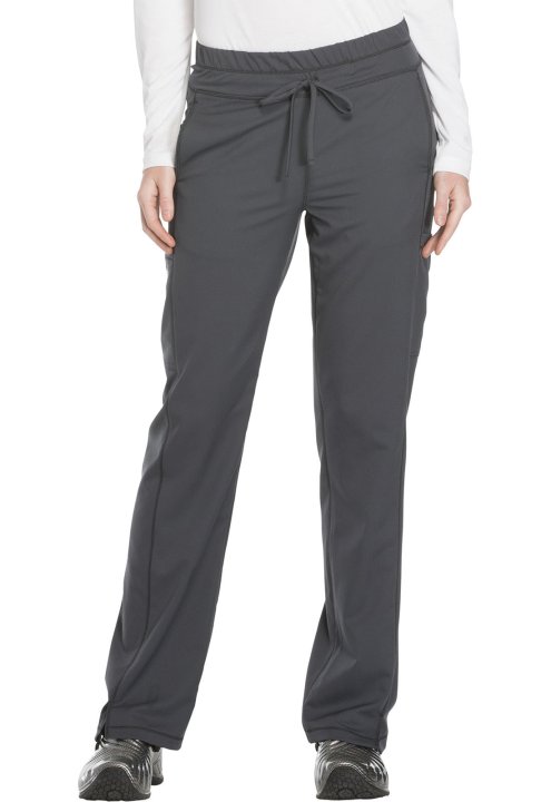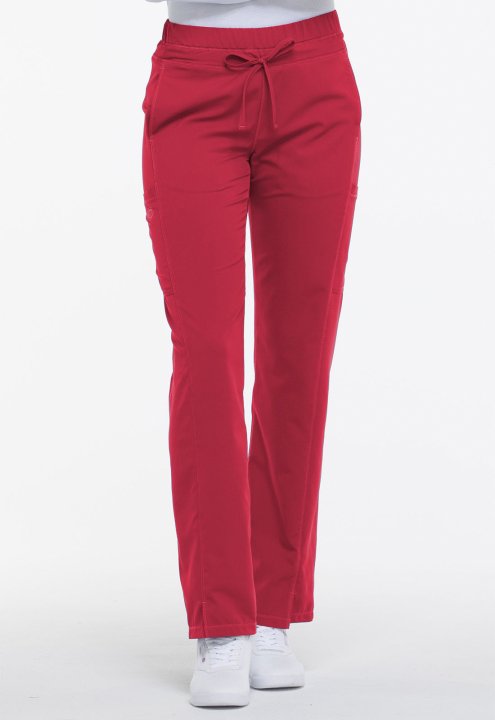 A Contemporary fit, mid rise, straight leg pant features an elastic waistband with functional drawstring, inseam pockets, a cargo pocket with tonal logo heat transfer, zip-closure back pocket at the yoke, side panels, side vents and coverstitch detail thr