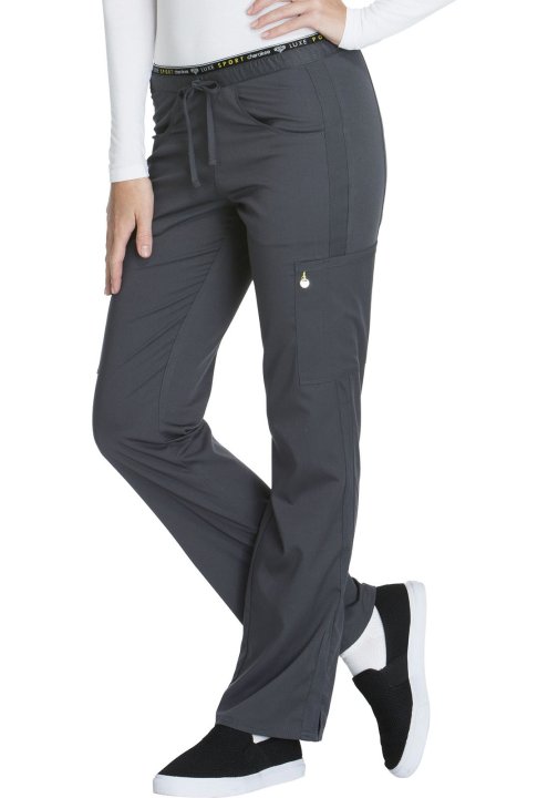 A Contemporary fit, mid rise, straight leg pant features a functional drawstring and logo elastic waistband. Also featured are tonal knit mesh strapping on the side seams, a mesh cell phone pocket, two front pockets, two cargo pockets (the left with a log
