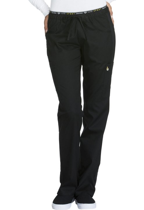 A Contemporary fit, mid rise, straight leg pant features a functional drawstring and logo elastic waistband. Also featured are tonal knit mesh strapping on the side seams, a mesh cell phone pocket, two front pockets, two cargo pockets (the left with a log