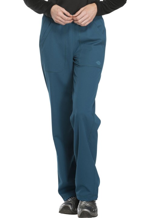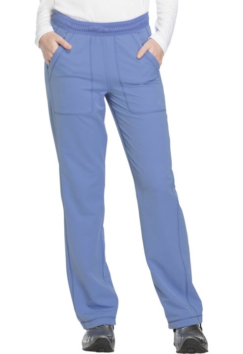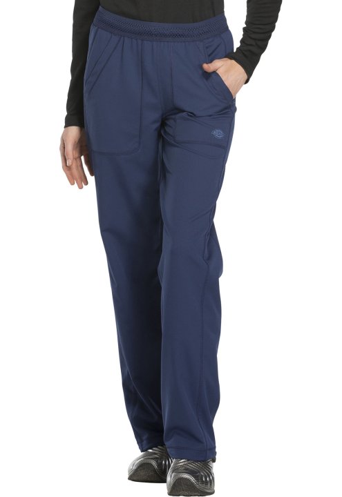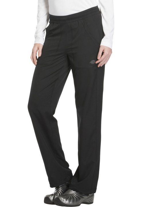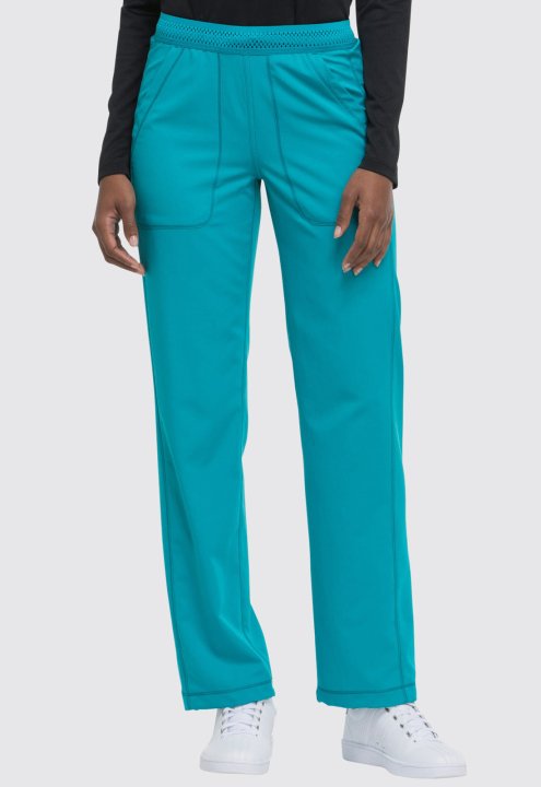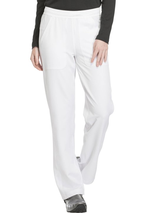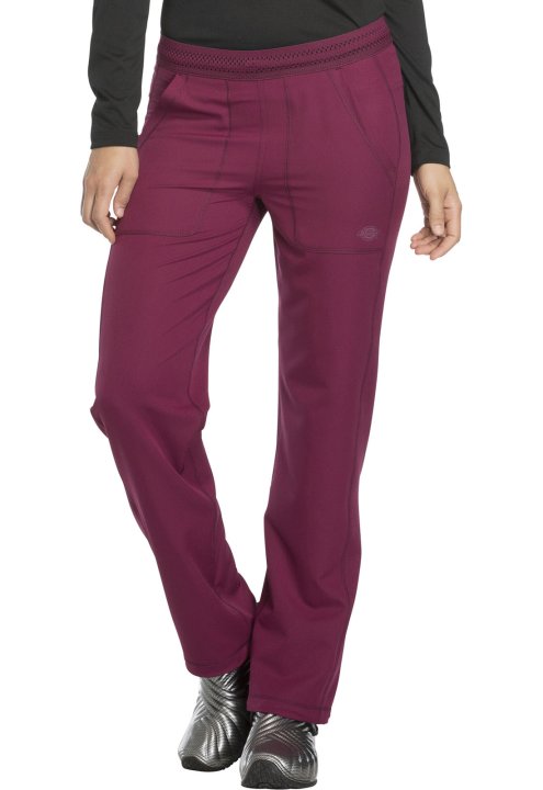 A Contemporary fit, mid rise, straight leg pant features a mesh design elastic waistband with a functional drawstring, slash pockets (one with a tonal logo heat transfer), a center back pocket, bungee cord at each leg opening and coverstitch detailing thr