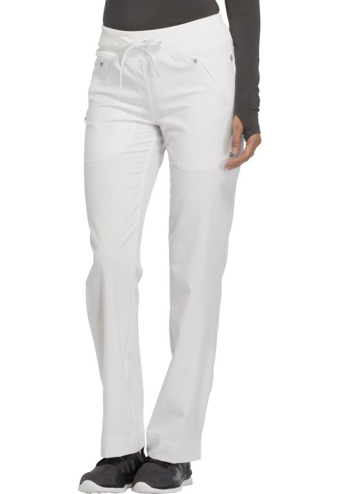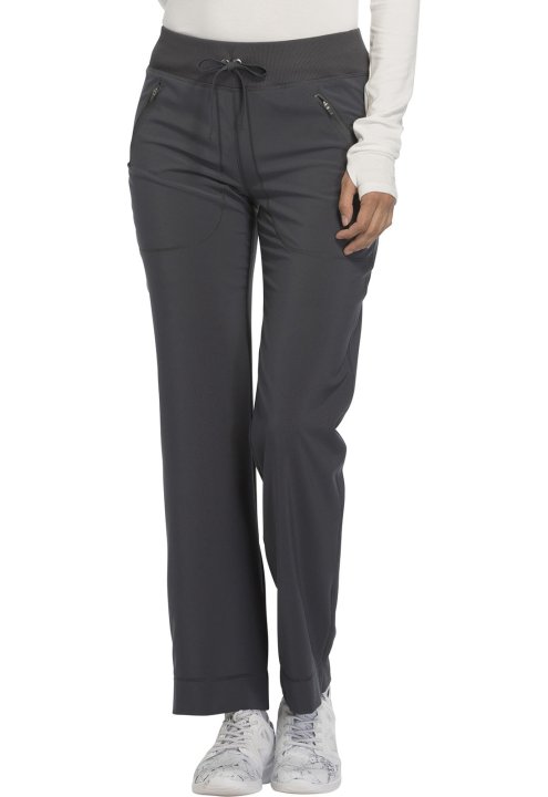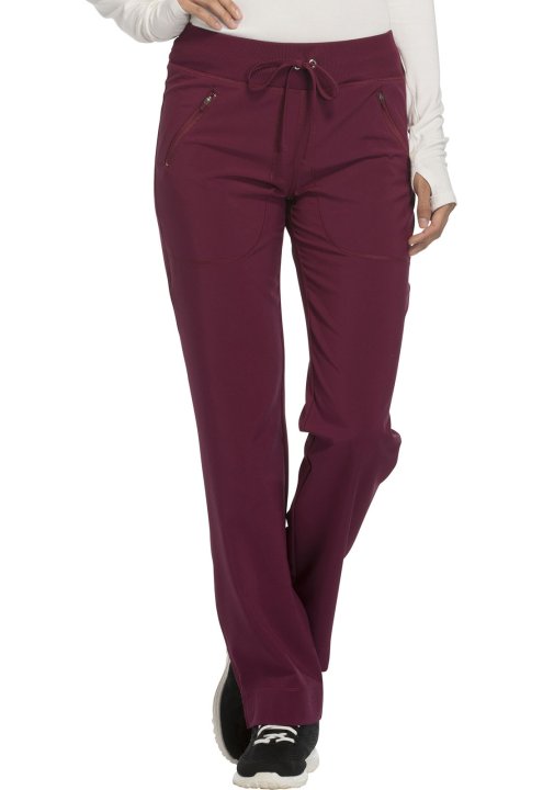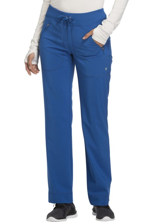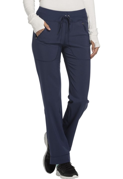 A Contemporary fit, mid rise, tapered leg pant features an elastic rib-knit waistband and functional drawstring. Also featured are two front zip pockets with coverstitch detail, signature logo heat transfer, a back yoke and side vents. Inseam: 30 1/2"
