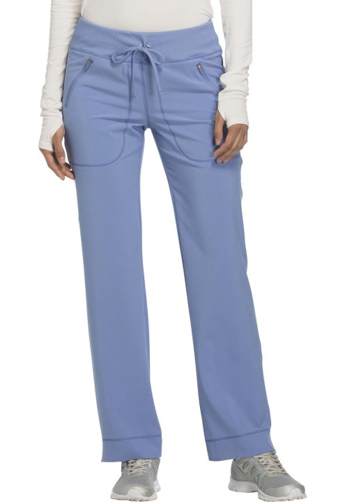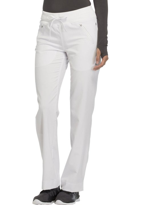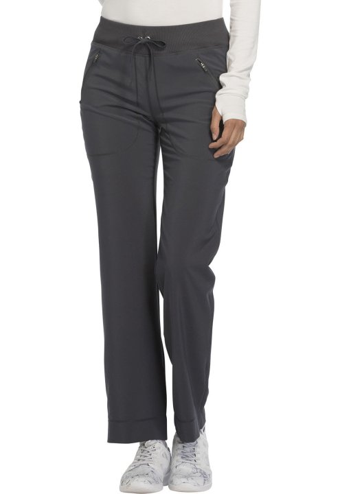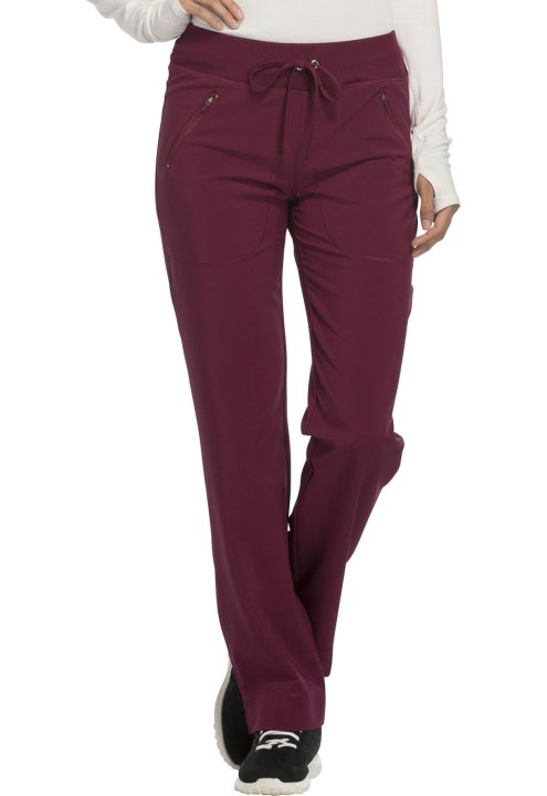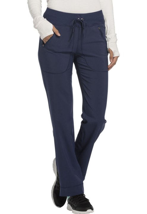 A Contemporary fit, mid rise, tapered leg pant features an elastic rib-knit waistband and functional drawstring. Also featured are two front zip pockets with coverstitch detail, signature logo heat transfer, a back yoke and side vents. Inseam: 33 1/2"
