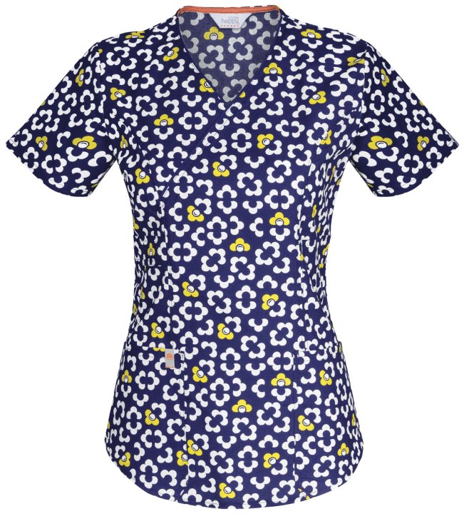 A Contemporary fit mock wrap top features two patch pockets, double princess seams, a flattering belt detail at the waist sides, signature mesh binding at the back neck, double needle topstitching and a shirttail hem. Center back length: 26"