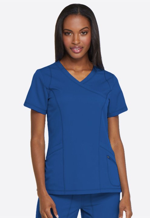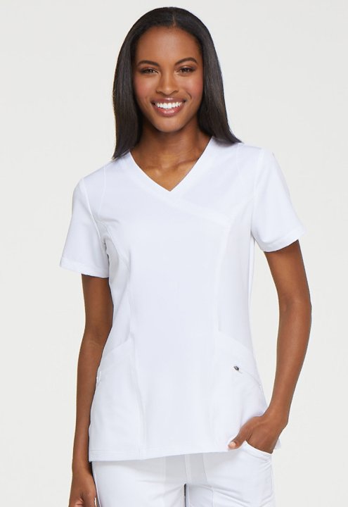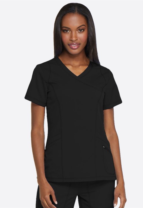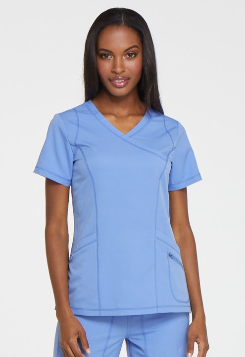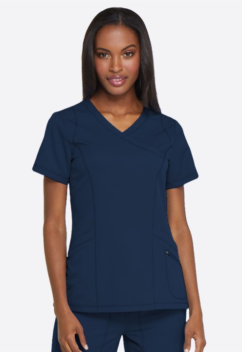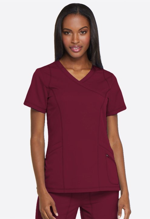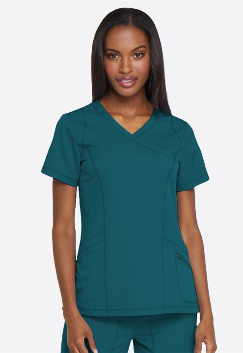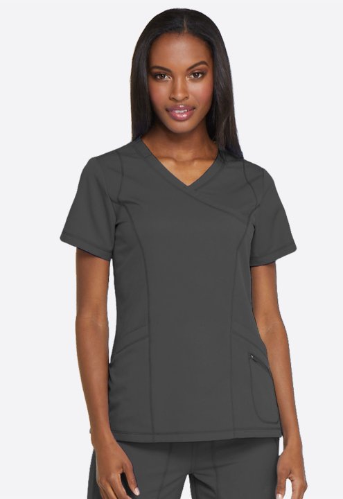 A Contemporary fit mock wrap top features princess seam detail, two front patch pockets with dye to match bungee (the right pocket with a inside tonal cable-routing outlet) and a zipper pocket. Also featured is a tonal logo heat transfer at the sleeve, si