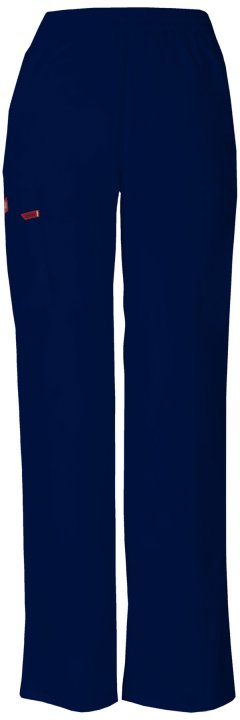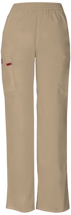 A Modern Classic fit, natural rise, tapered leg, pull-on pant features an all around elastic waistband with a Dickies logo twill tape on the inside back waistband and has an instrument loop on the right cargo pocket. Also featured are slash pockets and ca