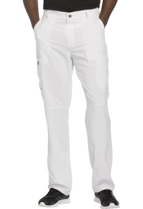 A Mens Athletic fit tapered leg pant features an inside functional drawstring, back elastic waistband, five belt loops, a zip fly with button closure and a hidden inseam gusset for extra ease. Also featured are two front slash pockets, a right double carg