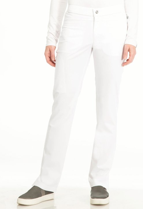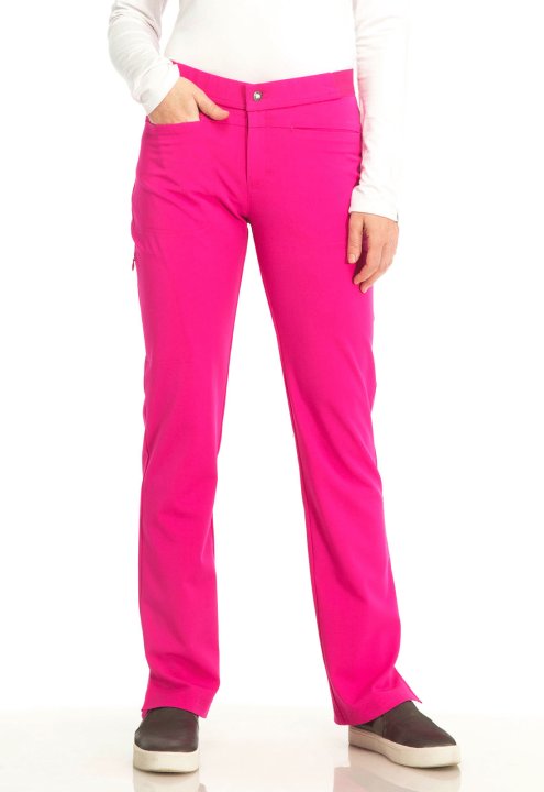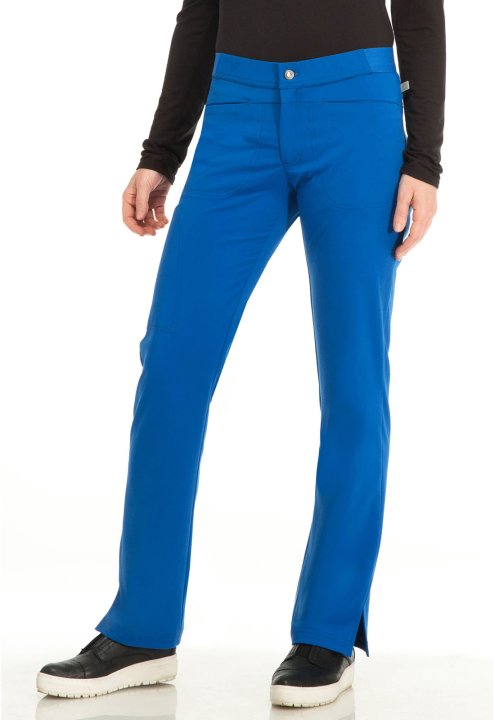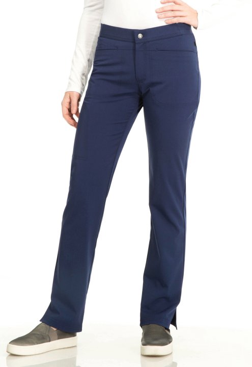 The Roma Trouser is a low rise slim pant that offers a Contemporary fit. It features a zip fly with button closure, elastic at waist and a heat transfer Sapphire logo on the center back waistband. Also featured are multi needle topstitching, front pockets