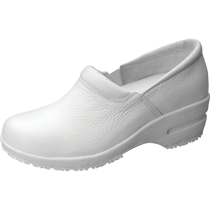 Soft and durable leather upper. Soft padded collar in the top line. Moisture absorbing lining materials. Unique outsole material is light, up to half the weight of other outsoles and is flexible and durable. Slip Resistant outsole. APMA accepted. Heel Hei