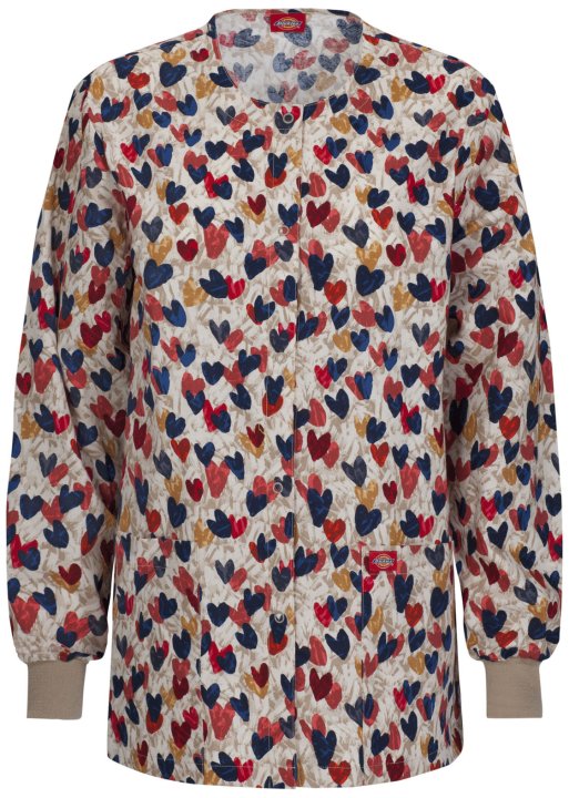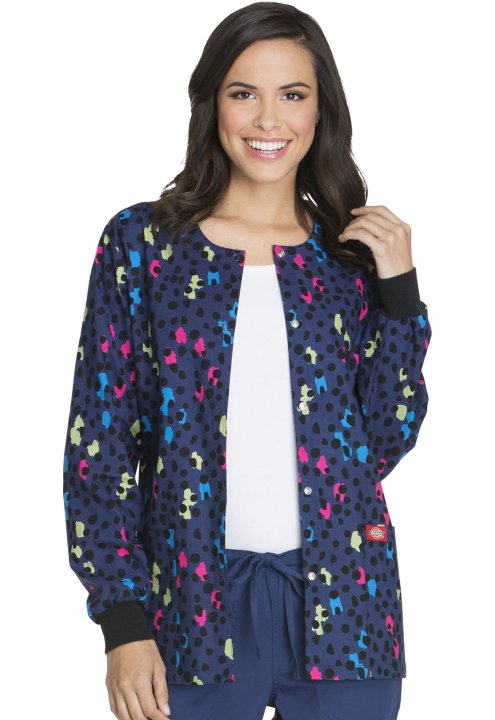 A Modern Classic fit warm-up jacket features knit cuffs, a snap front closure, two patch pockets, and side vents for ease of movement. Center back length: 28".