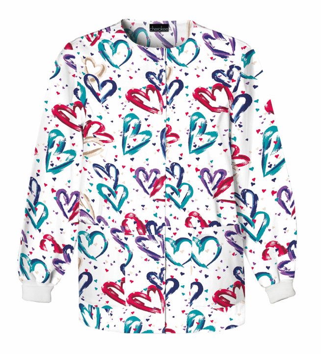 A Traditional Classic fit, round neck, warm-up with patch pockets, snap front and rib knit cuffs. Center back length: 29".