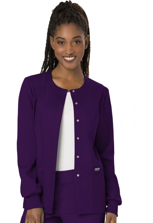 A Modern Classic fit, snap front warm-up jacket features two patch pockets (the right with an interior pocket, the left with a hidden instrument loop), a logo label with bungee loop, front and back princess seams, a back yoke, side vents and knit cuffs. C