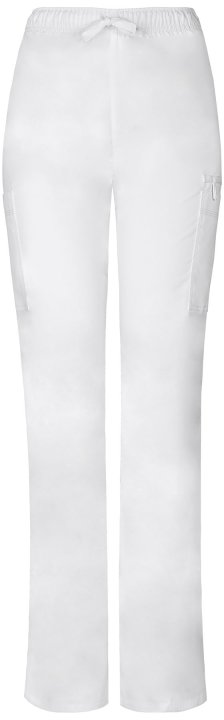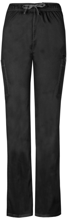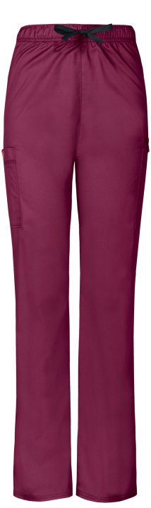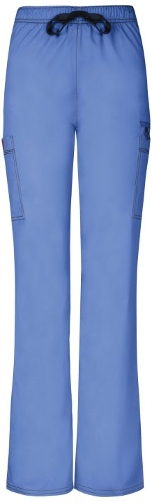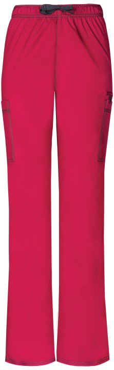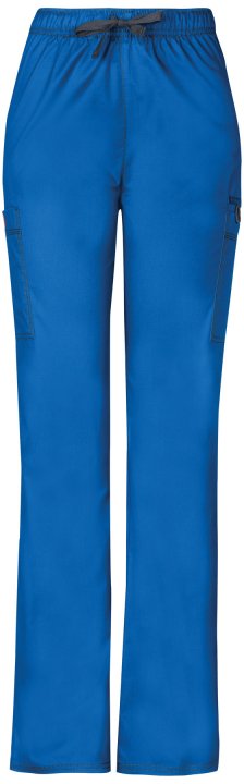 A natural rise, straight leg pull-on pant features an adjustable drawstring with an all around elastic waistband. Also featured are two cargo pockets, instrument loops, a bungee loop, a back pocket with a hook and loop fastener and contrast multi-needle t