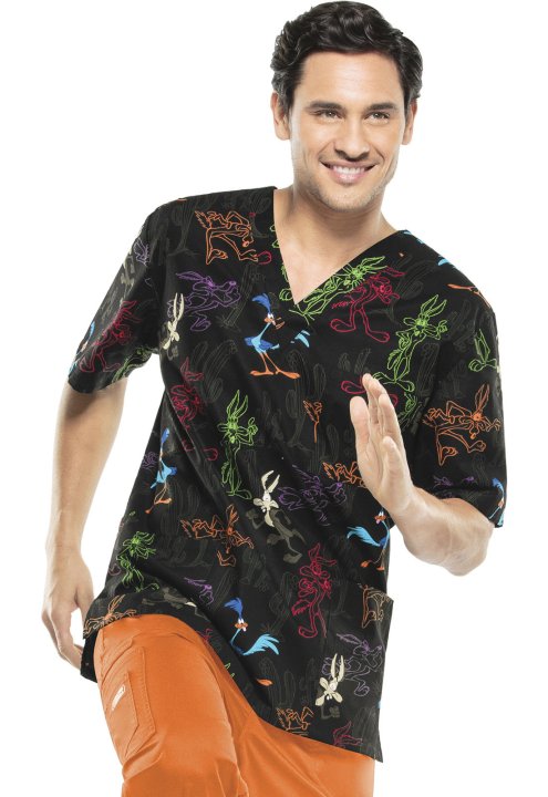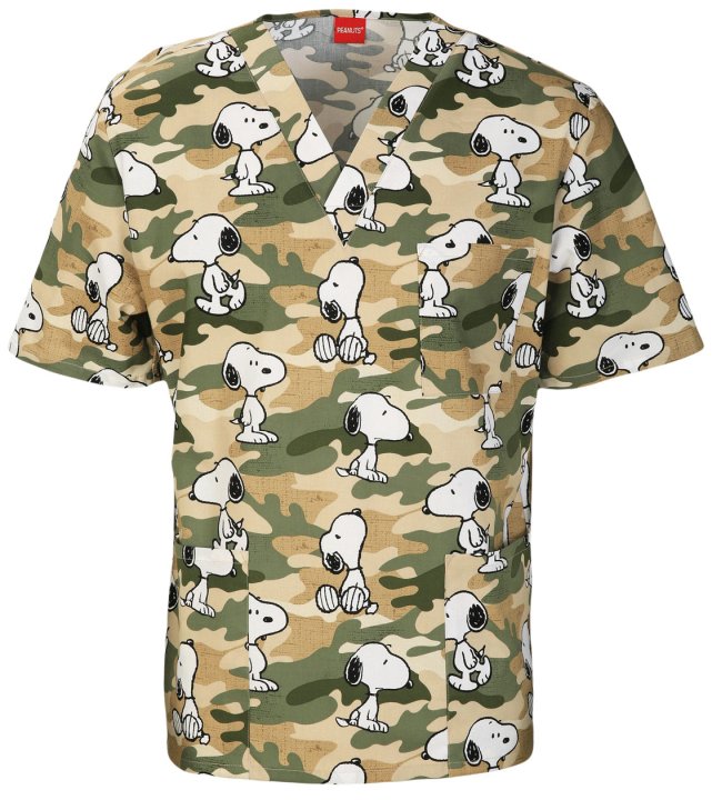 This unisex V-neck tunic has one chest pocket, two patch pockets, and side vents. Center back length: 28"