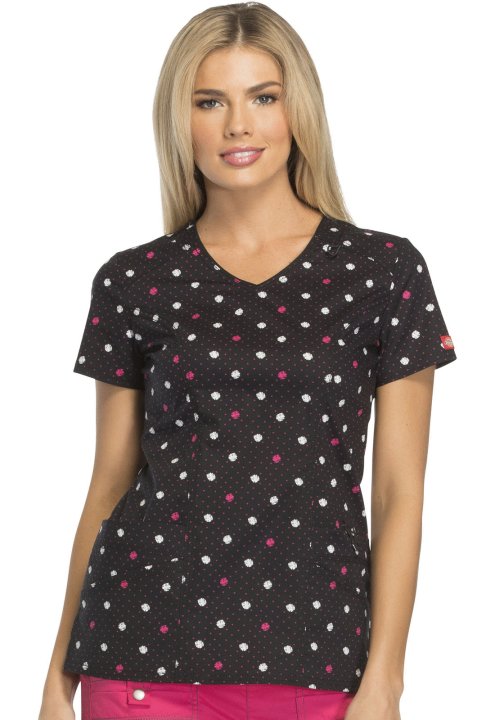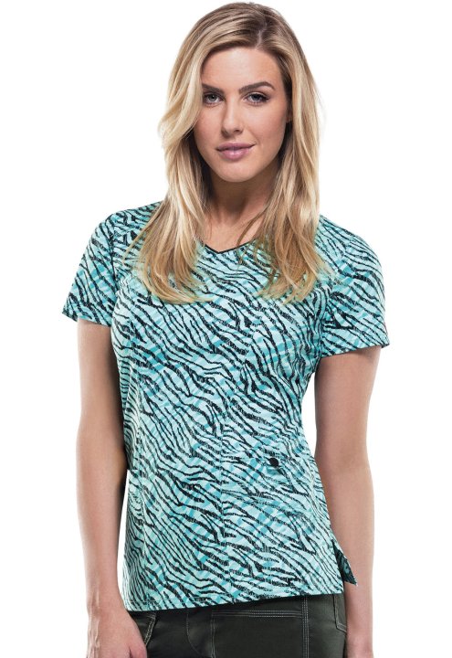 A Contemporary fit V-neck top features front yokes with a bungee loop, front princess seams and back darts to add shape. Also featured are patch pockets, one with a functional snap closure for extra security, side vents and multi needle topstitching. Cent