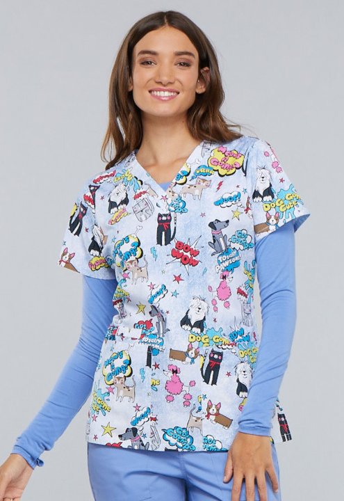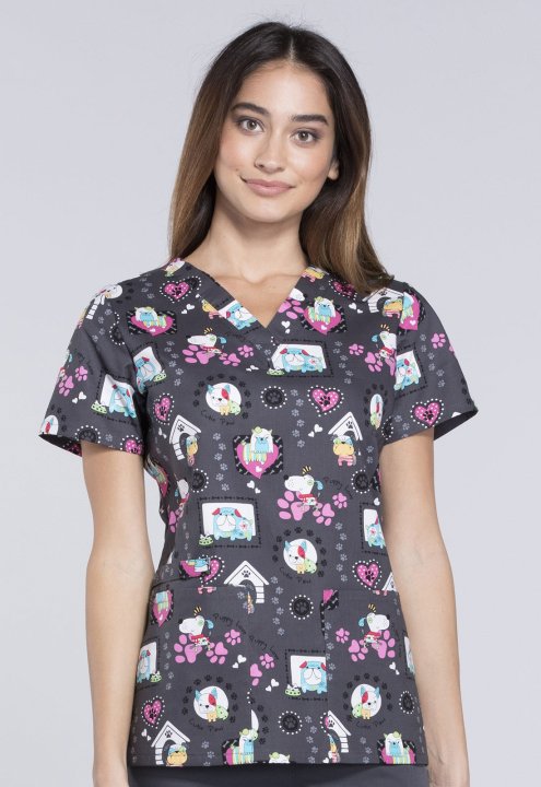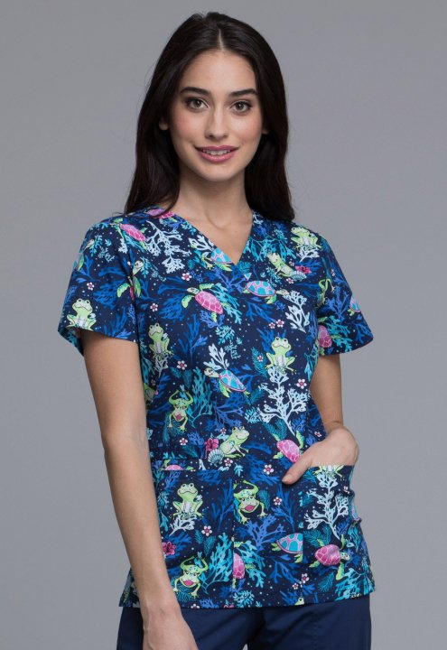 A Modern Classic fit V-neck top features two patch pockets, an instrument loop and side vents for ease of movement. Center back length: 26