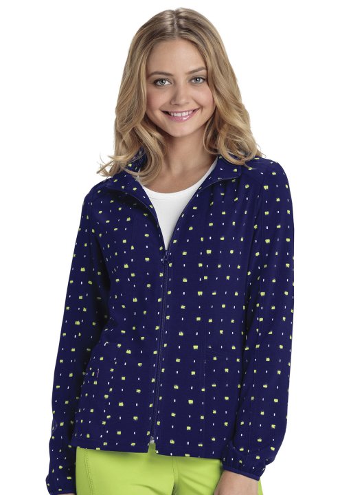 A Contemporary fit, zip front, warm up jacket has a detachable hood, front and back princess seams, patch pockets, and an outer welt pocket with signature Pink contrast bar tacks. Also featured is a hidden functional Pink grommet and bungee loop for headp